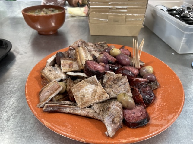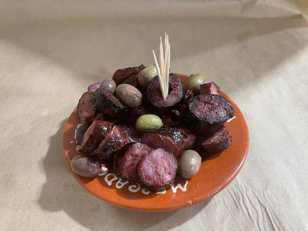 Fêvera, entremeada, chouriço de carne e chouriço de sangue, azeitonas e picles
